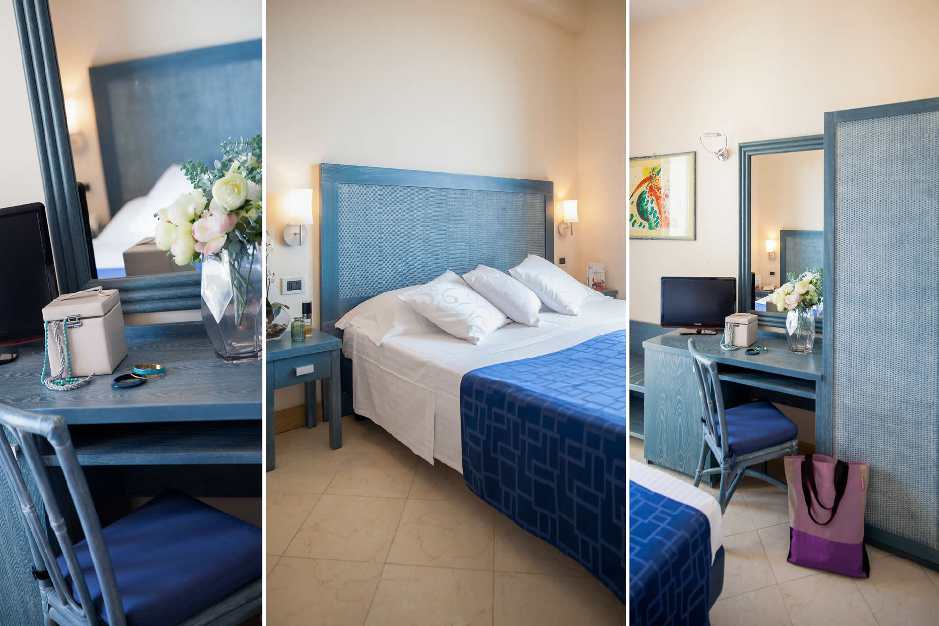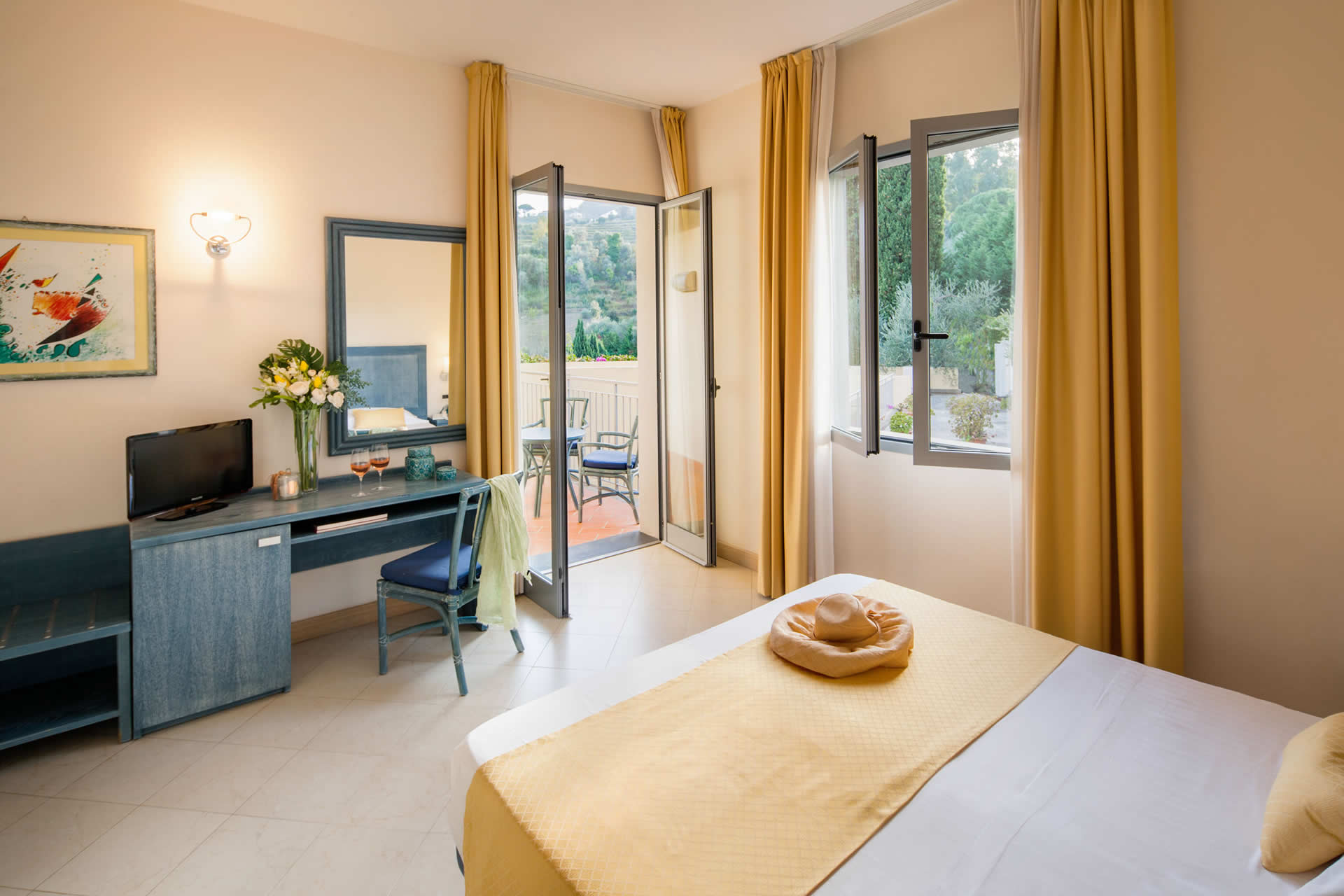 Le Camere Triple con Balcone Vista Giardino sono la scelta ideale per chi cerca comfort e tranquillità, in un ambiente spazioso e luminoso. Affacciate sul giardino dell'hotel, regalano un'atmosfera rilassante e riservata, perfetta per famiglie o piccoli gruppi.