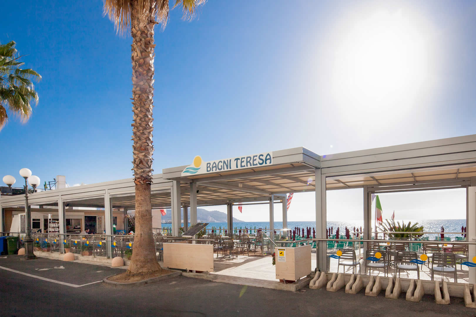 Con il suo elegante dehors ombreggiato e tavolini all'aperto, potrai assaporare piatti freschi, bevande rigeneranti, snack e specialità locali, il tutto accompagnato dalla splendida vista sul mare.